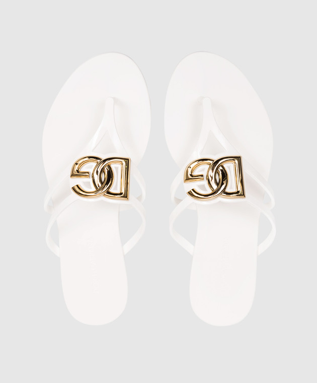 Білі шльопанці з фактурною монограмою