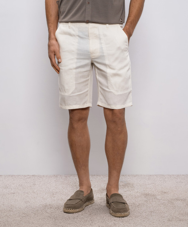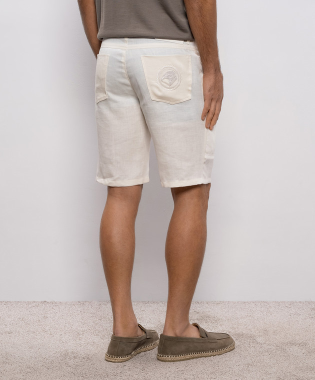 Білі шорти з льону та шовку з патчем логотипа