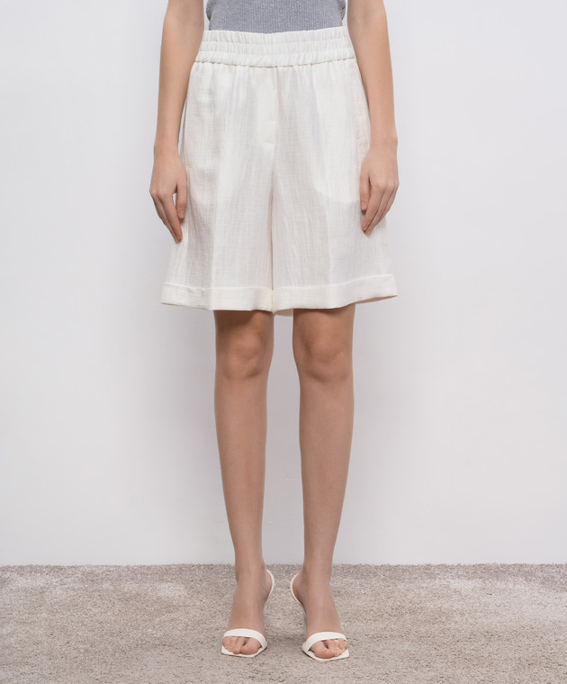 Білі шорти з льону з ефектом жатки