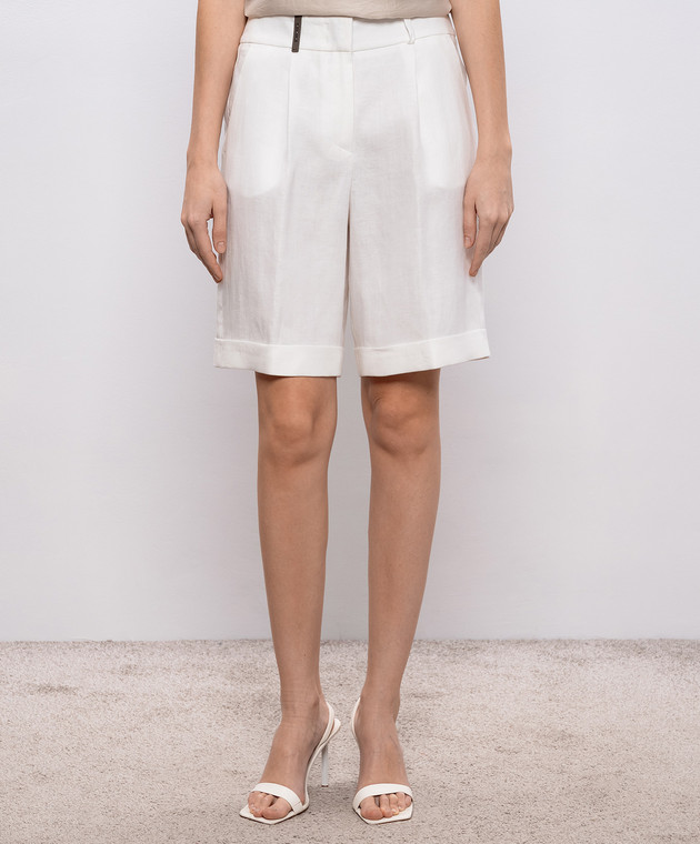 Білі шорти з льону з відворотами