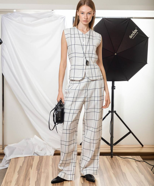 Білі штани Duomo Letizia з льону в клітинку