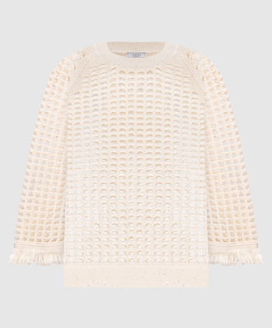 Білий ажурний джемпер з паєтками та бахромою