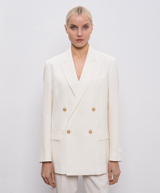Білий двобортний жакет з вовною