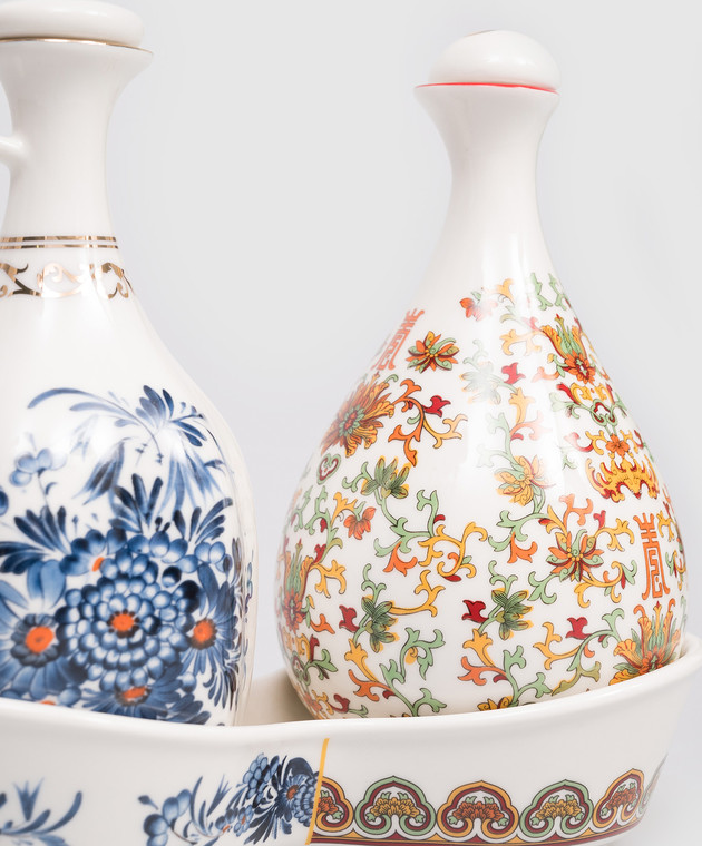 Білий порцеляновий набір спецівників Thelme для олії та оцту в принт
