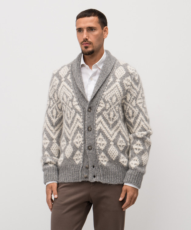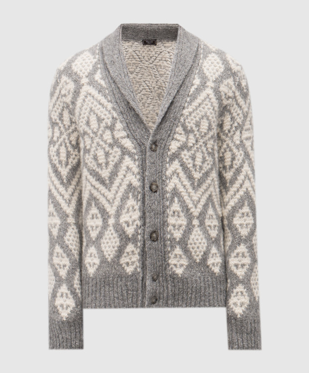 Білий кардиган з вовною альпаки у візерунок