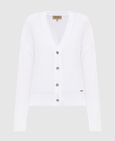 Білий кардиган з вовною в смужку