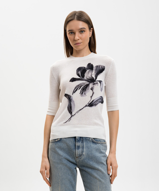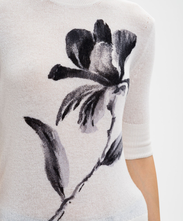 Білий топ з кашеміру з квітковим принтом