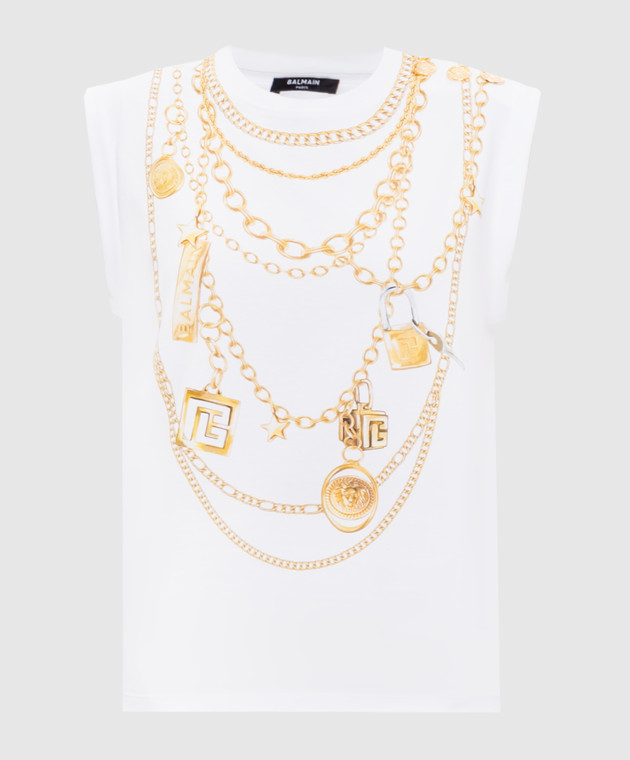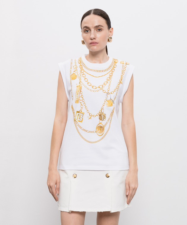 Білий топ з брендовим принтом