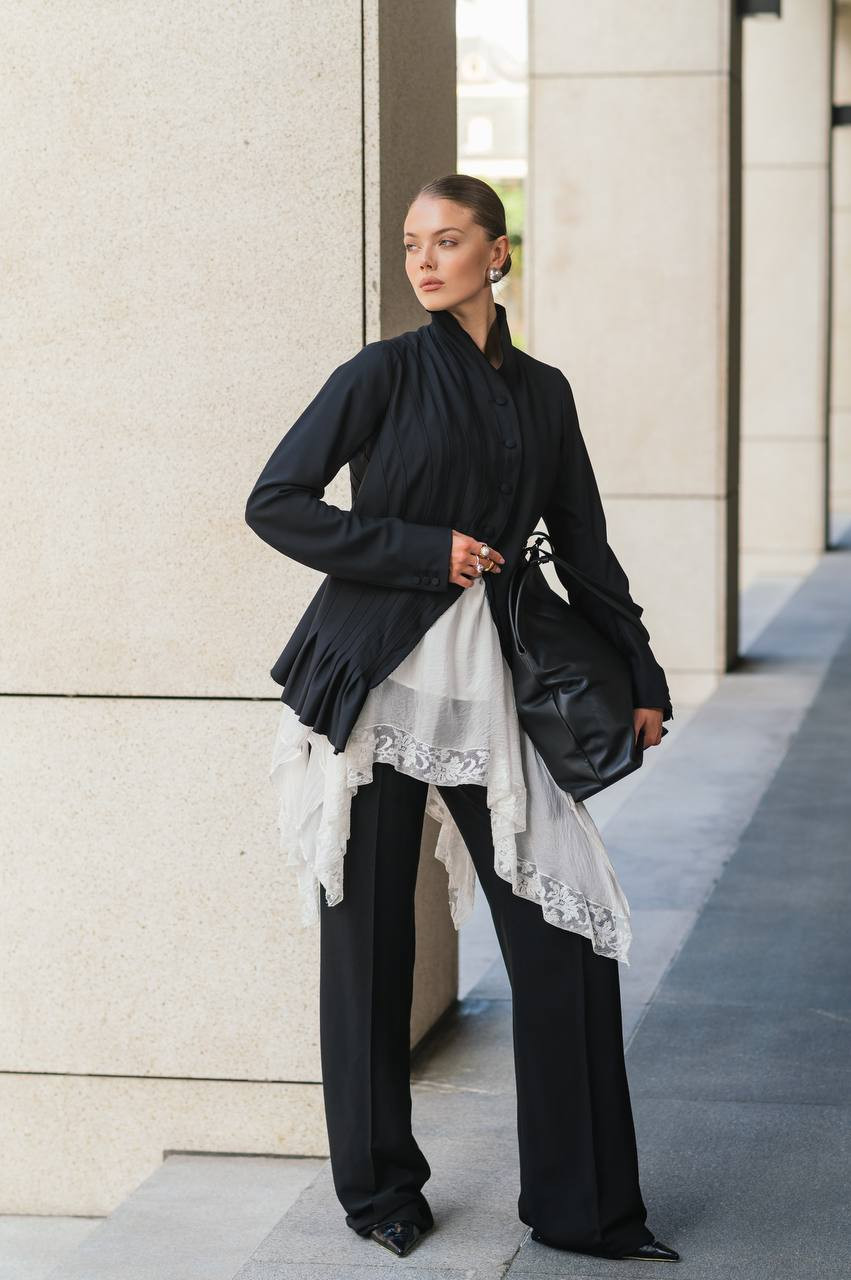 • Декор: асиметричний низ, ефект жатки, мереживо