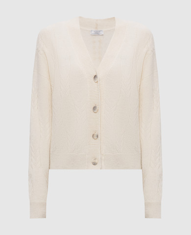 Білий подовжений кардиган з вовни