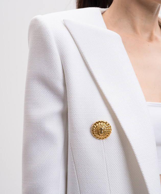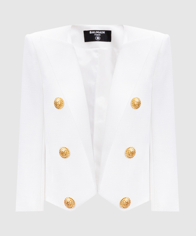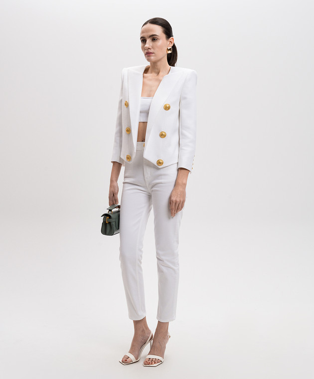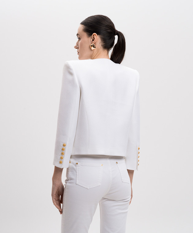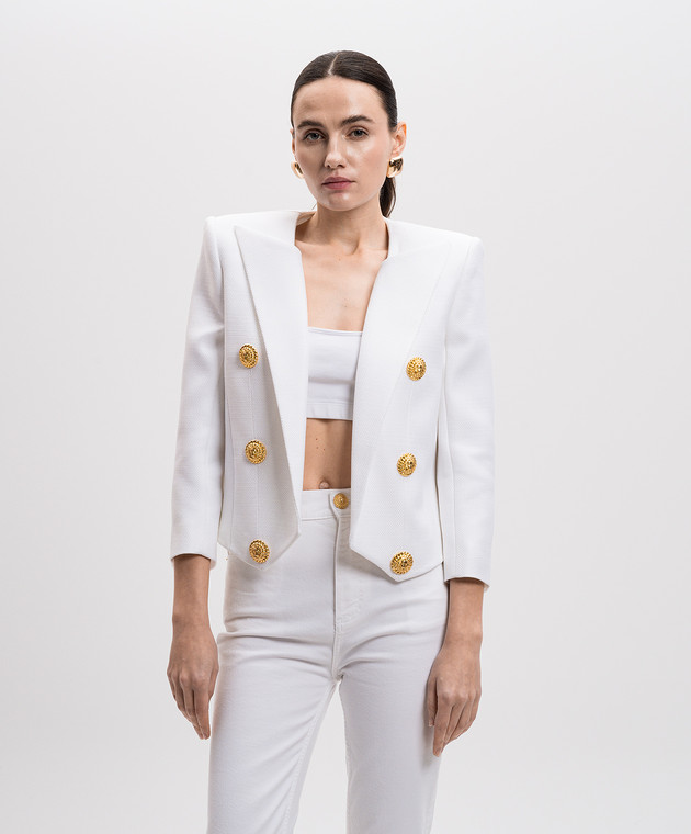 Білий укорочений жакет з брендовою фурнітурою