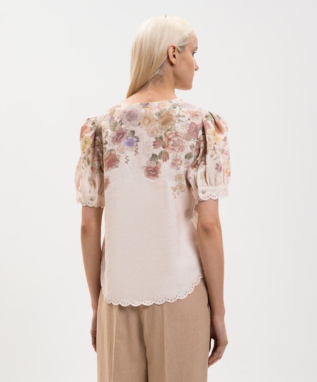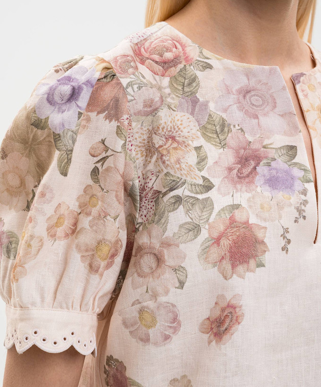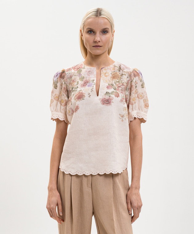 Бежева блуза з льону в квітковий принт