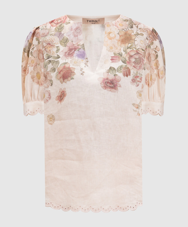 • Декор вишивка б, металевий фактурний логотип, квітковий принт, фігурний низ