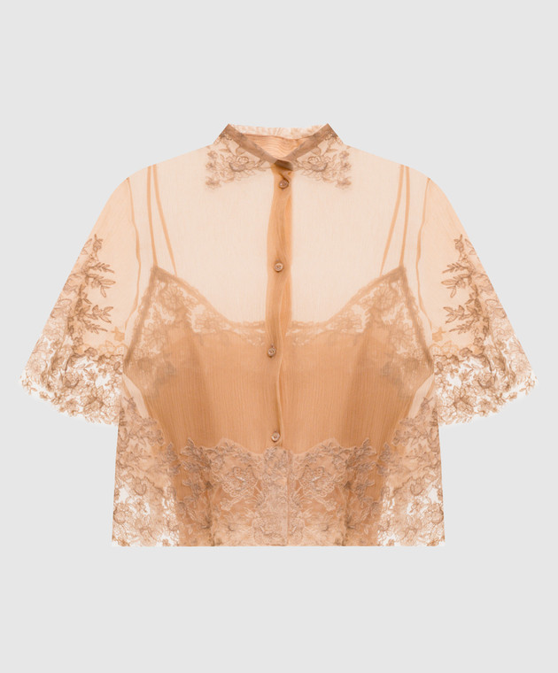 Бежева блуза із шовку з мереживом