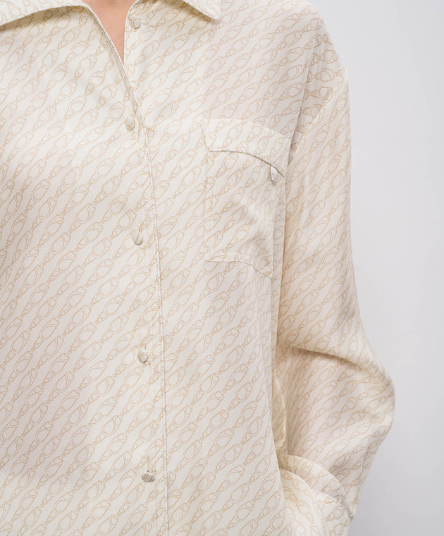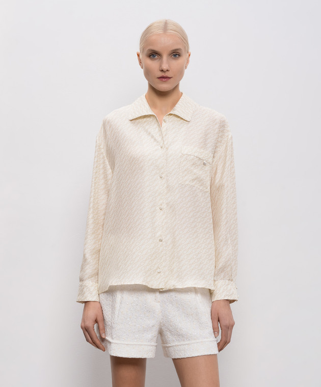 Бежева блуза із шовку в брендовий принт
