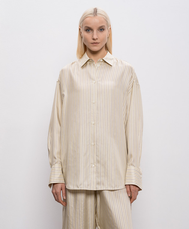 Бежева блуза із шовку в смужку