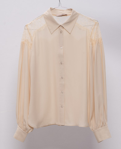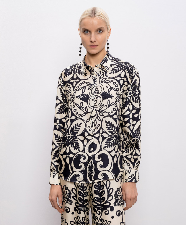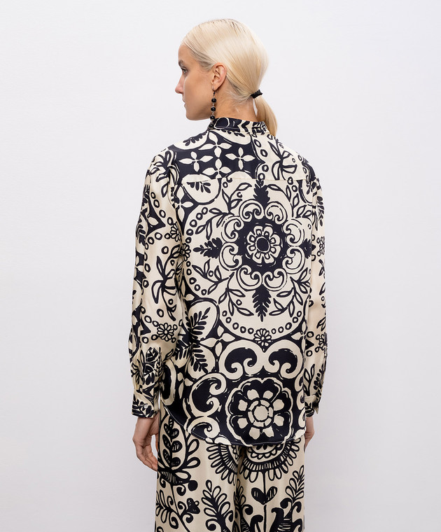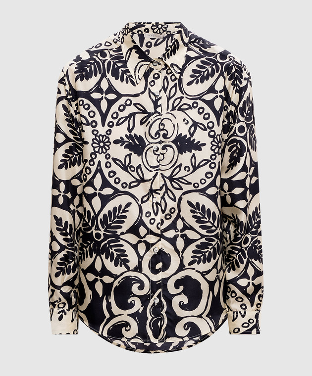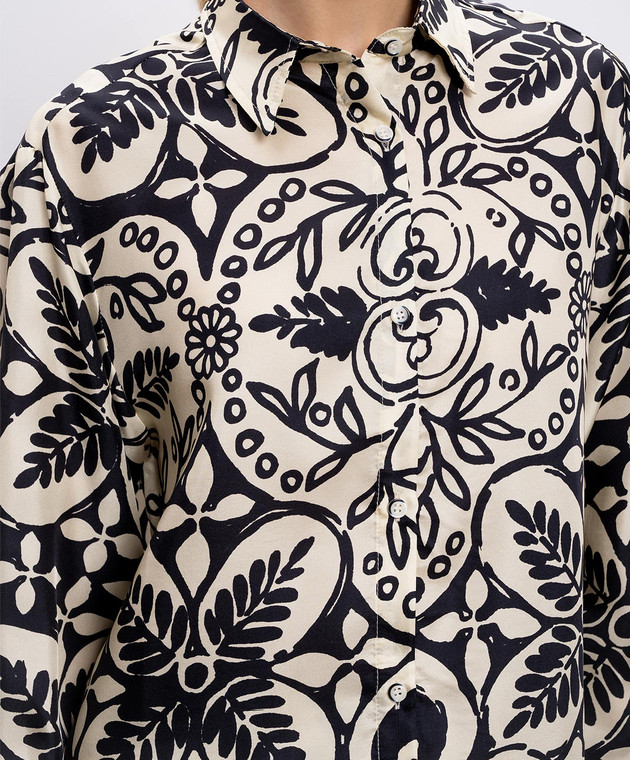 Бежева блуза із шовку в принт