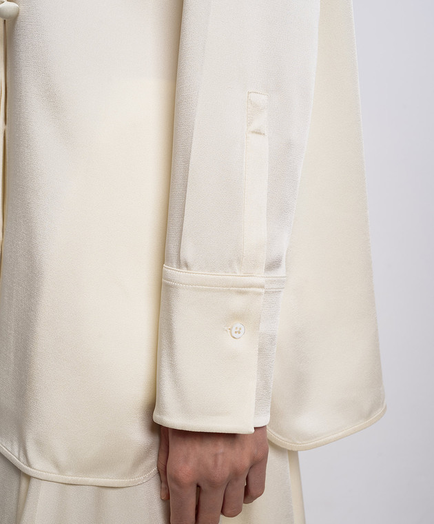 • Декор: фігурний низ, розрізи в бокових швах, стрічки на комірі, блискуча текстура