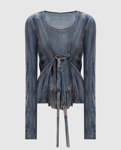 • Декор: блискуча текстура, фігурний виріз, комір-аскот