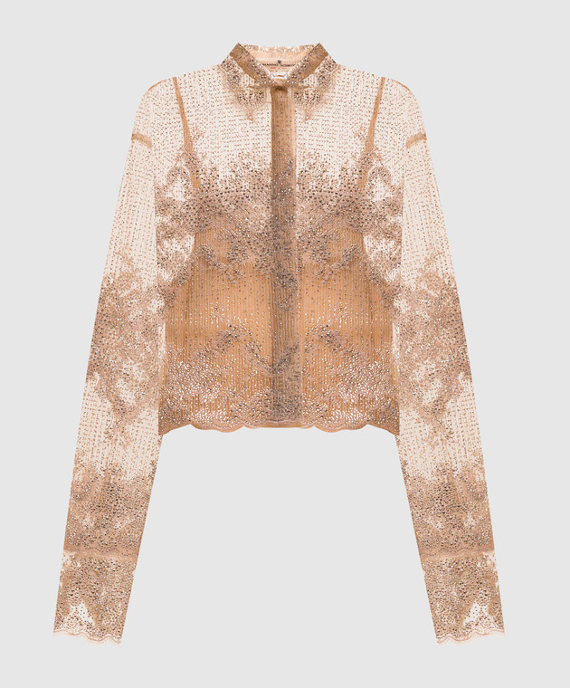 Бежева блуза з кристалами