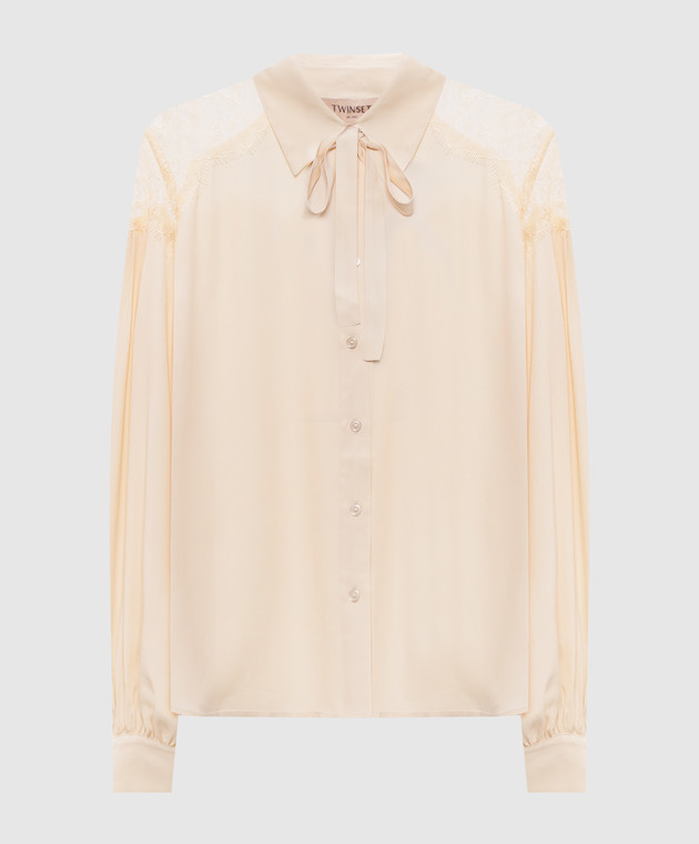 Бежева блуза з мереживом