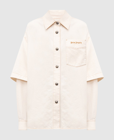 Бежева укорочена сорочка в смужку