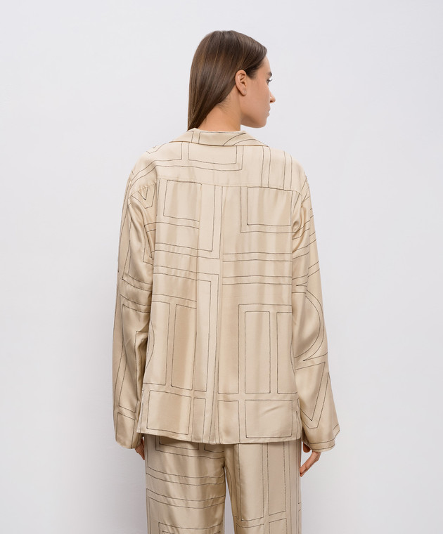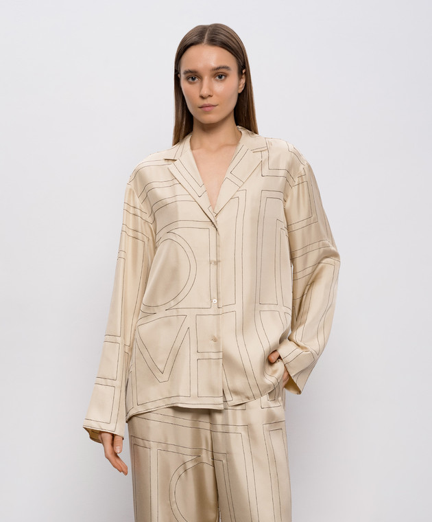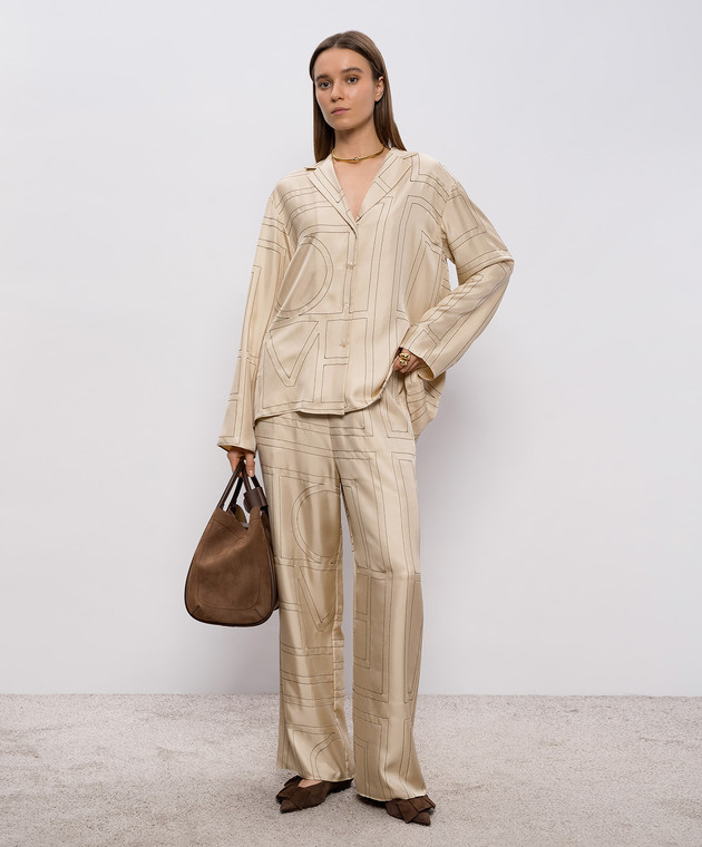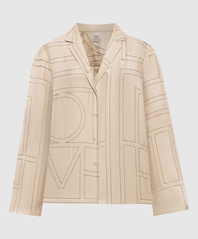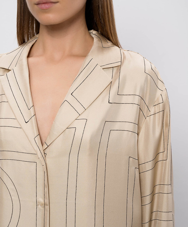 Бежева блуза із шовку з вишивкою монограми логотипа