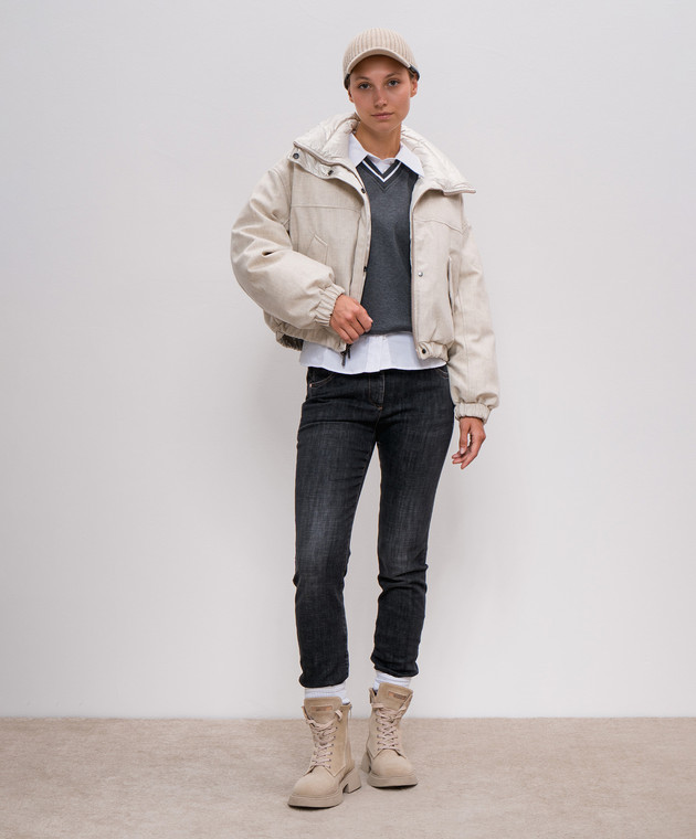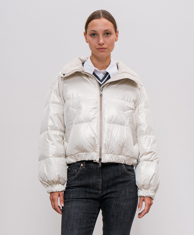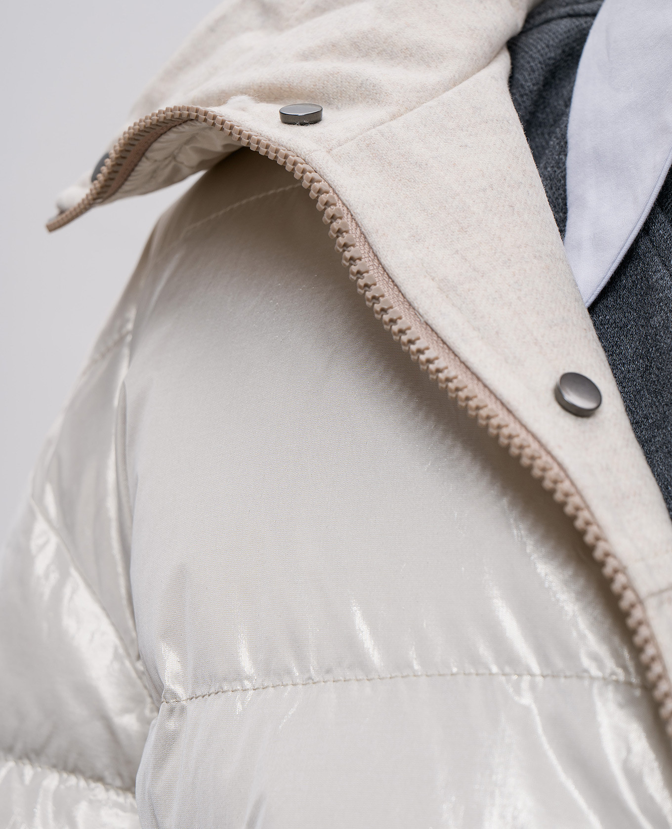 Бежева двостороння пухова куртка з вовною і кашеміром з ланцюжком моніль