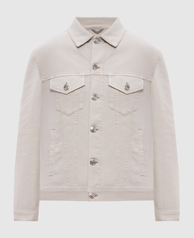 Бежева джинсова куртка з емблемою