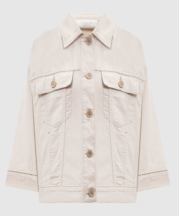 Бежева джинсова куртка з льоном