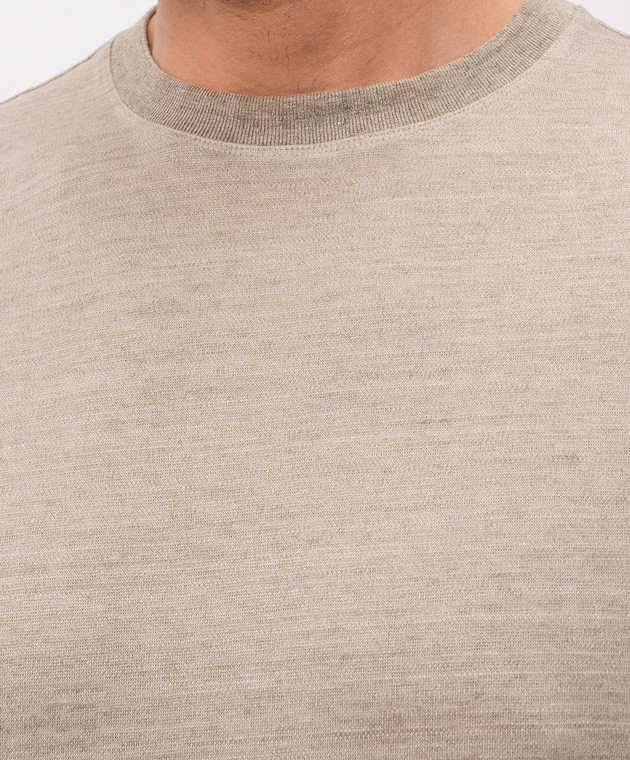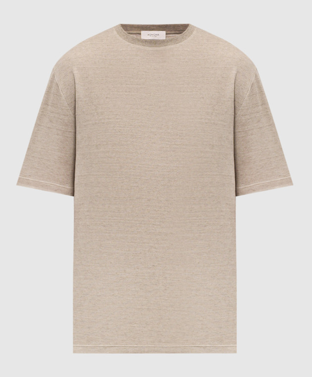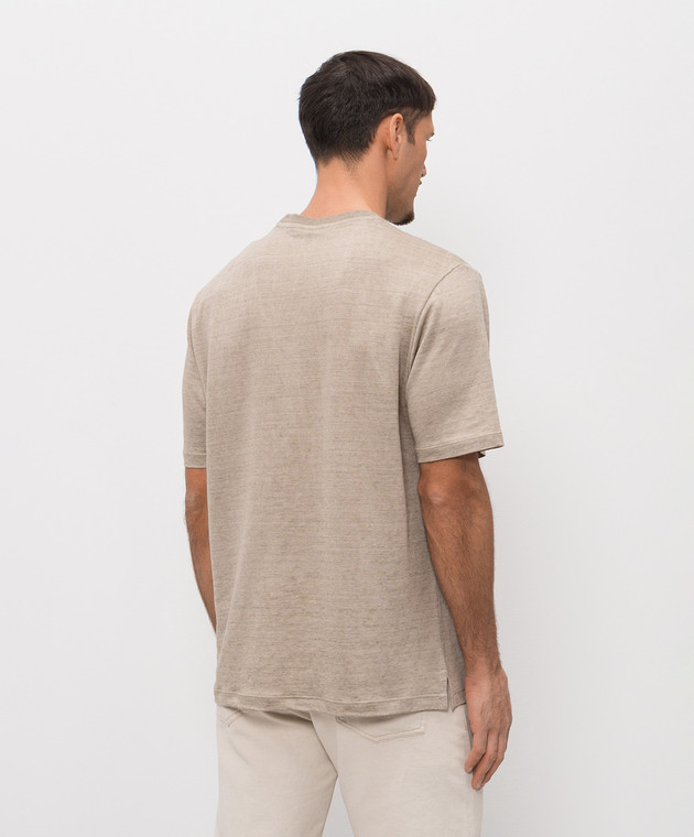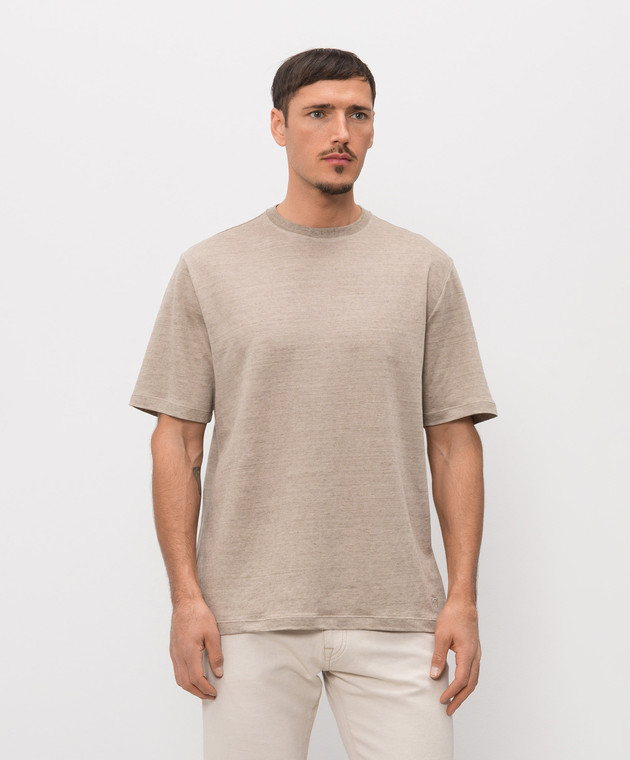 Бежева футболка з льону з вишивкою логотипа