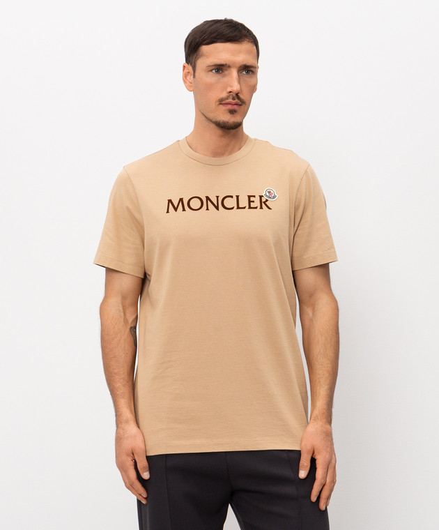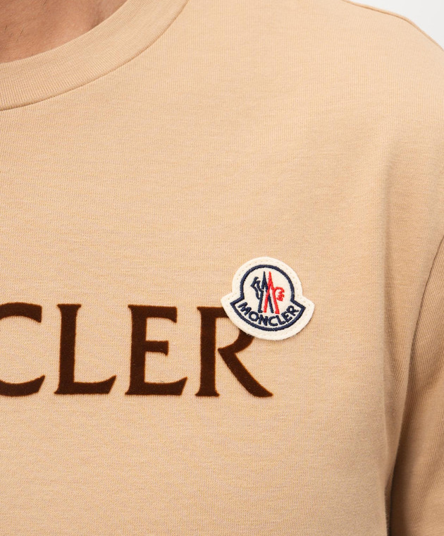 Бежева футболка з фактурним логотипом