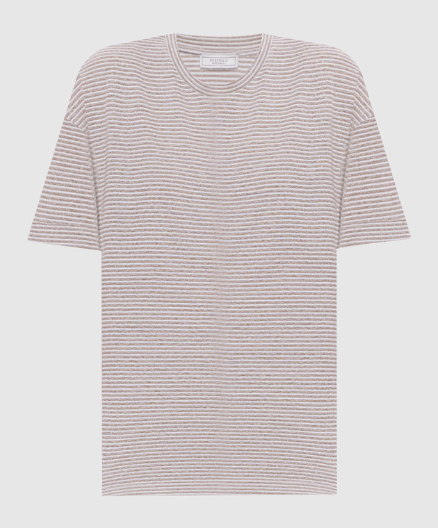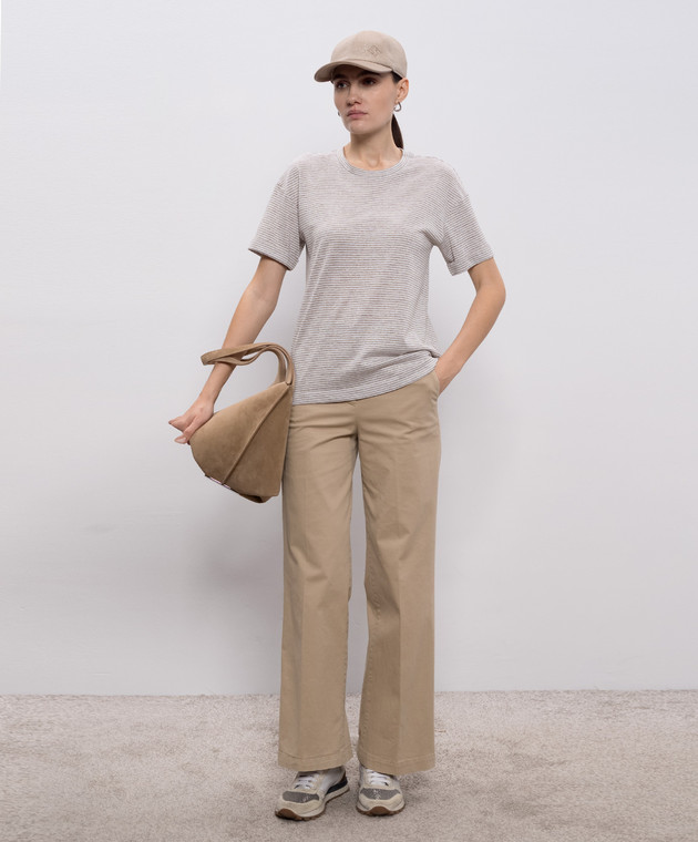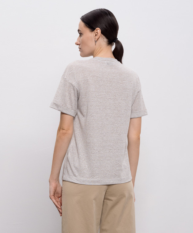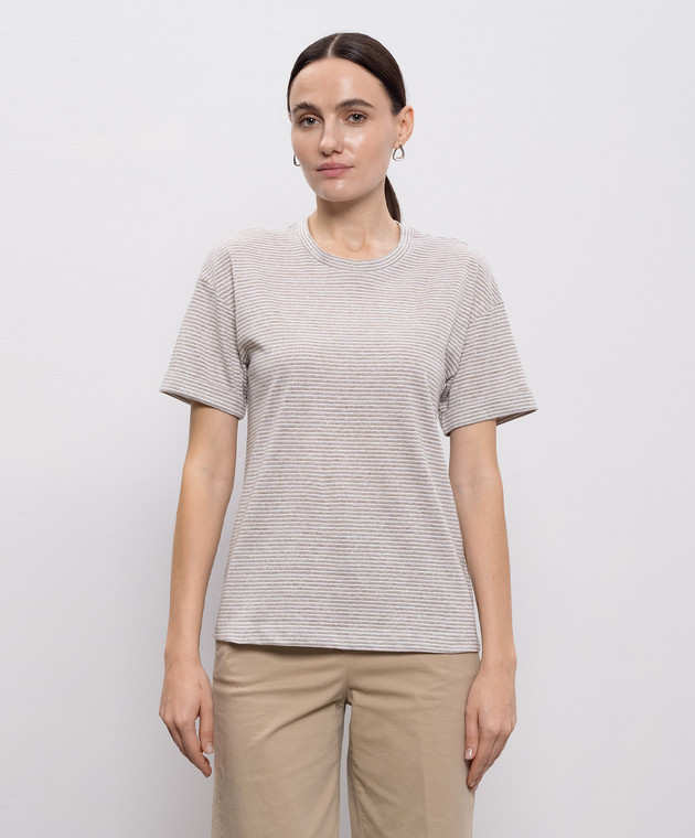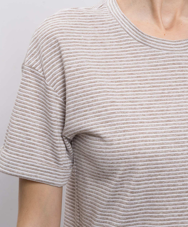 Бежева футболка з льоном в смужку