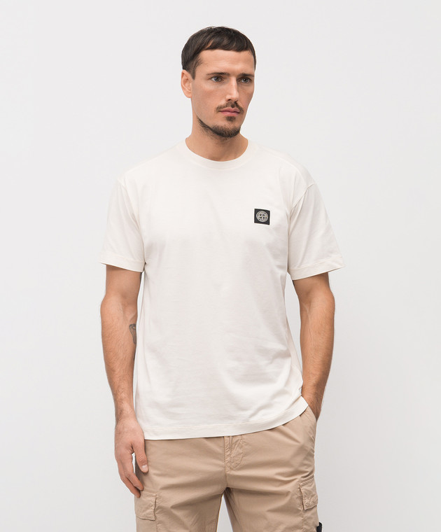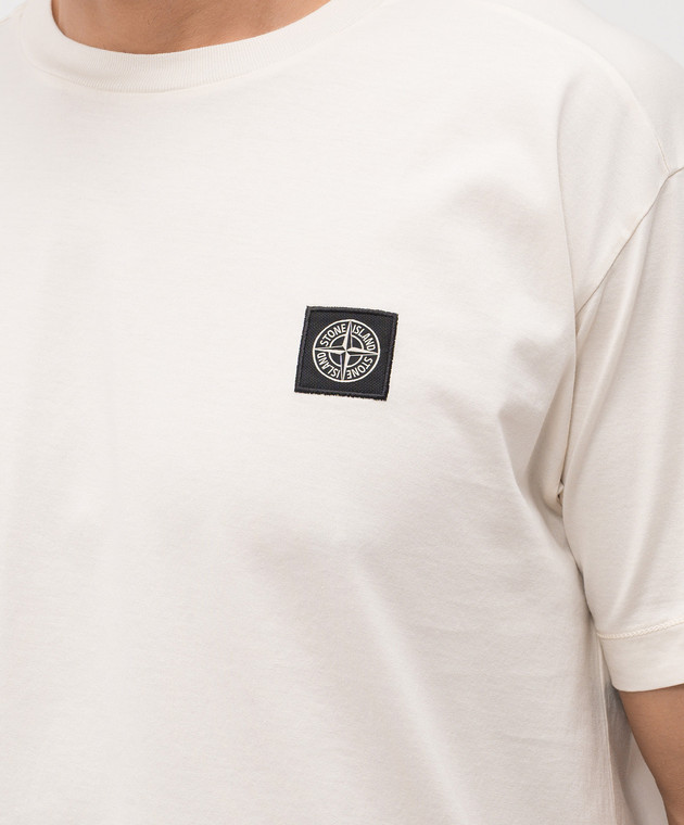 Бежева футболка з нашивкою логотипа