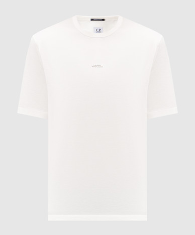 Бежева футболка з принтом логотипа