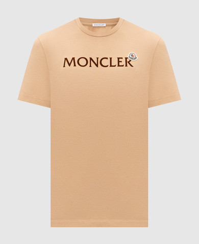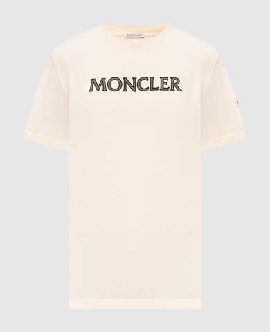 Бежева футболка з вишивкою логотипа