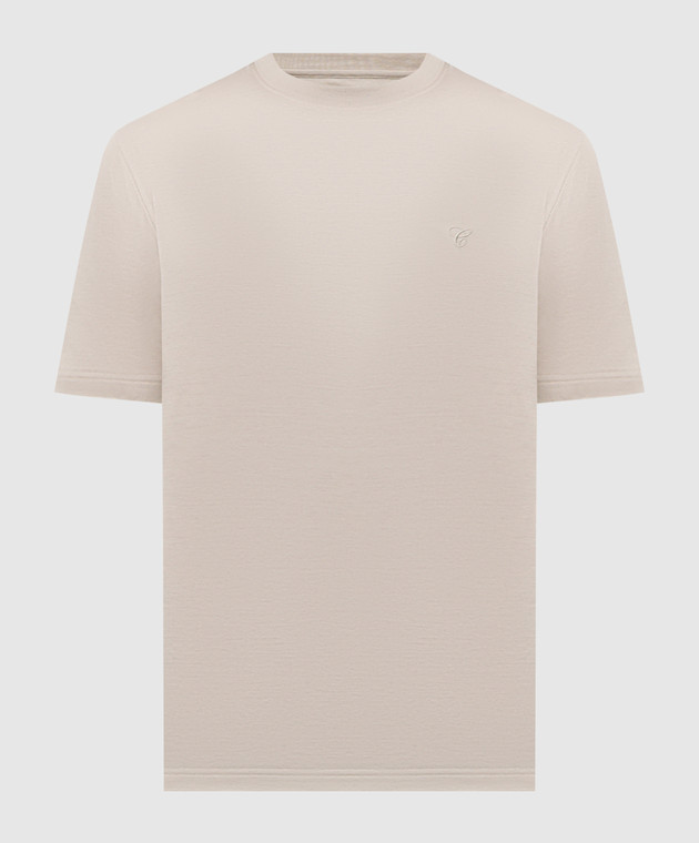 Бежева футболка з вишивкою монограми