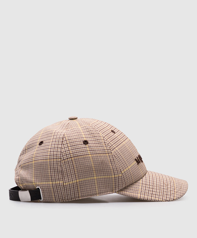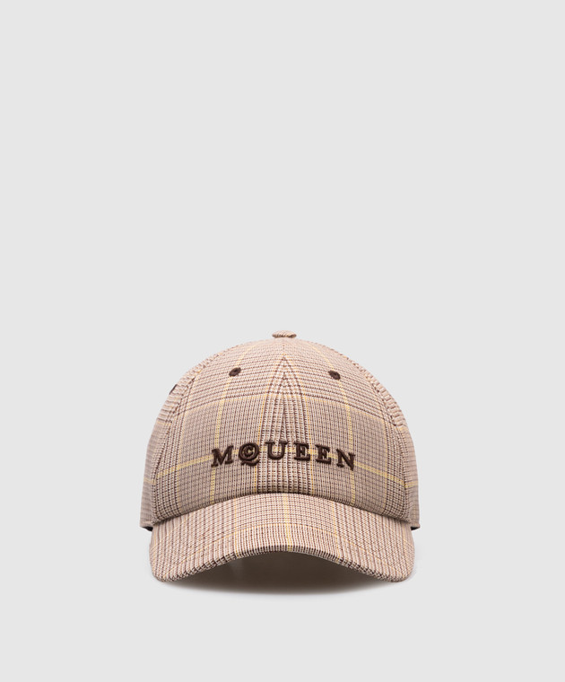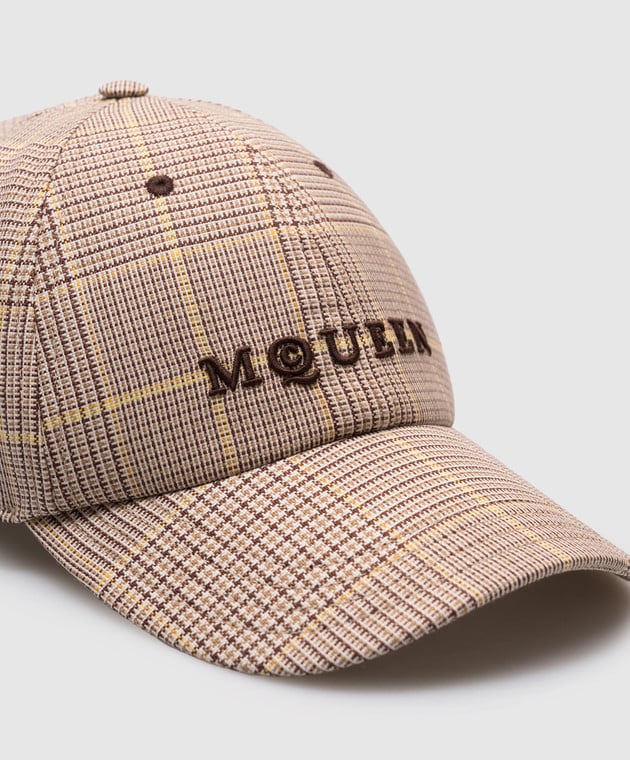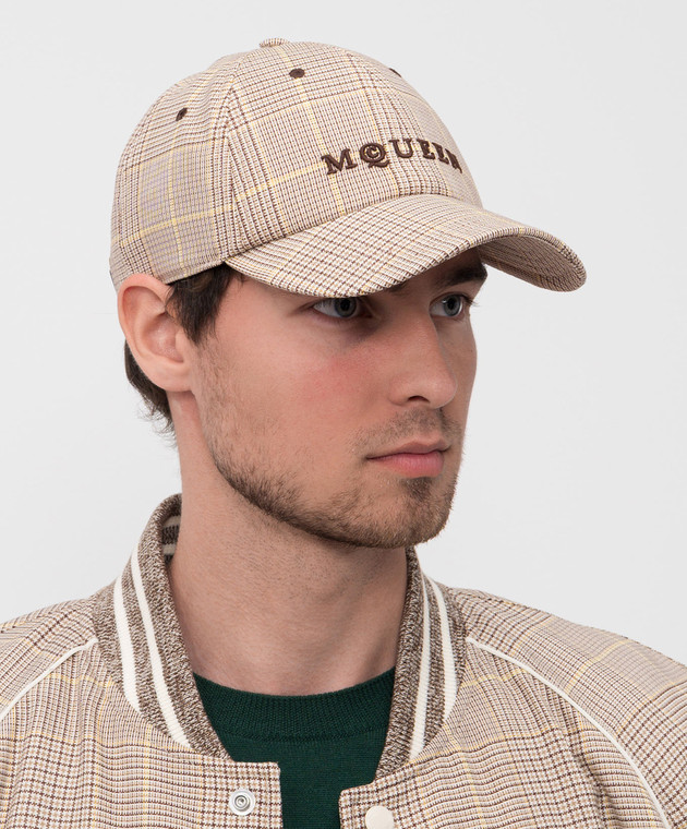 Бежева кепка з вовни в клітинку з логотипом