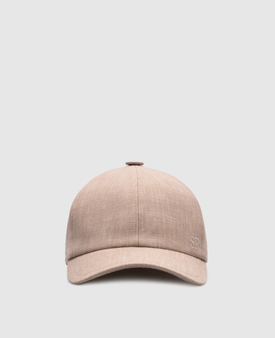 Бежева кепка з льоном з вишивкою логотипа