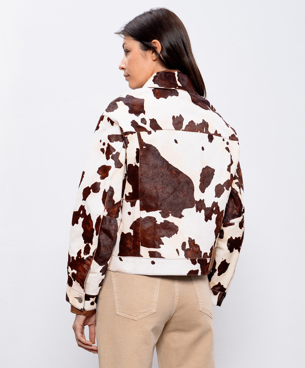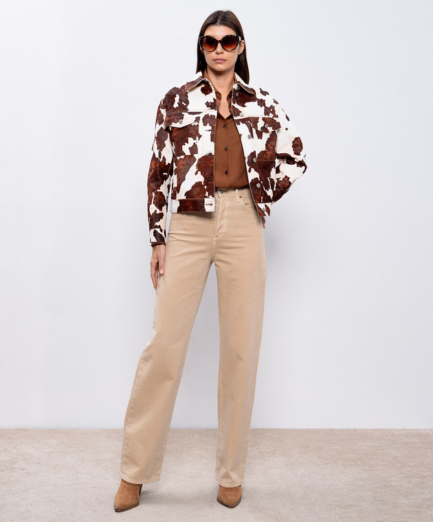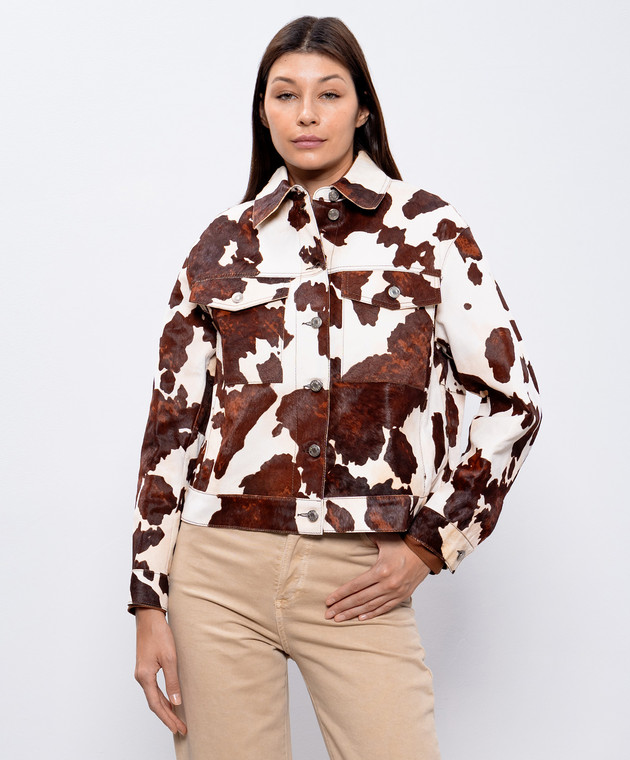 Бежева шкіряна куртка TIROLO з ефектом поні в анімалістичний принт