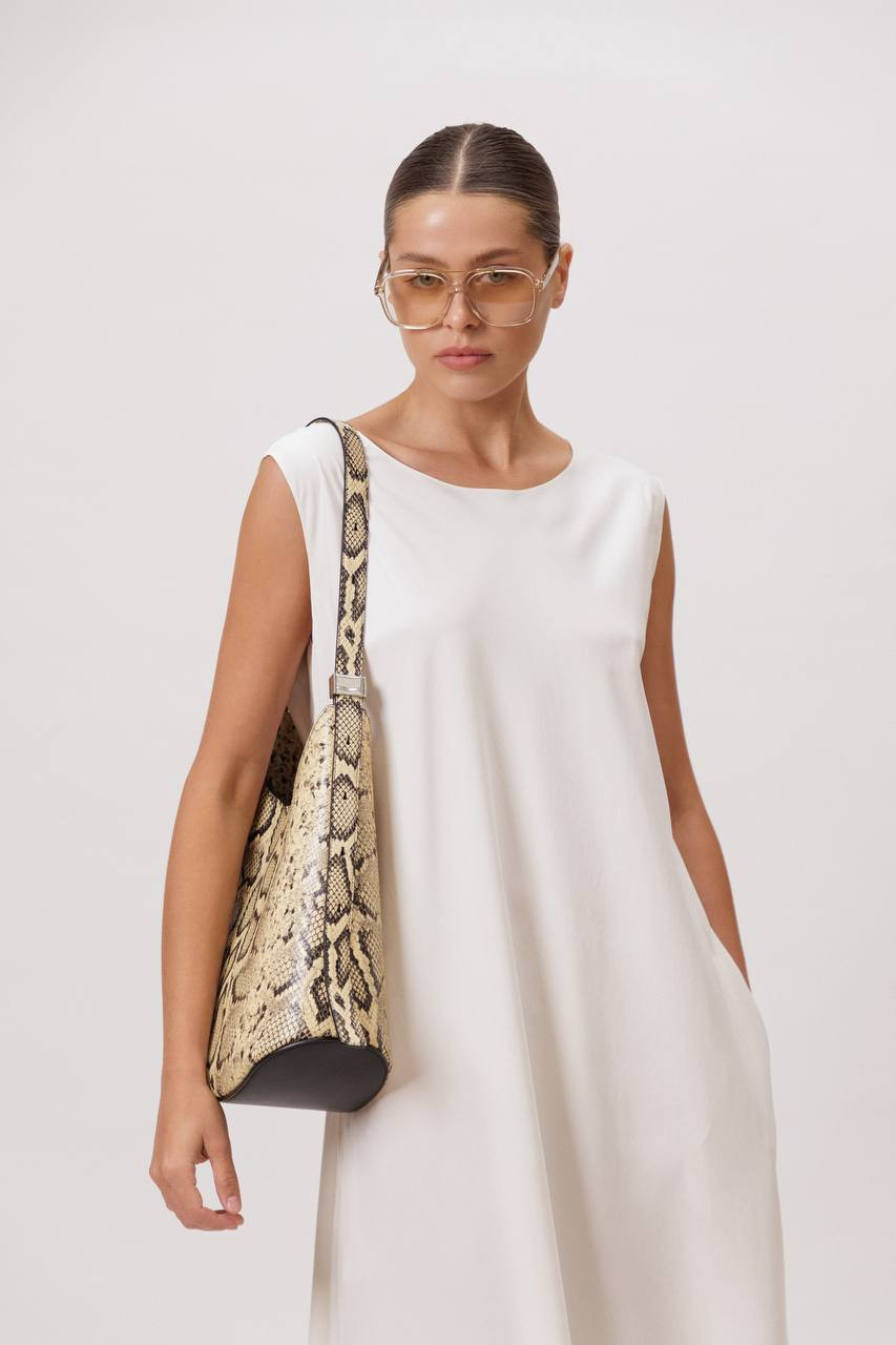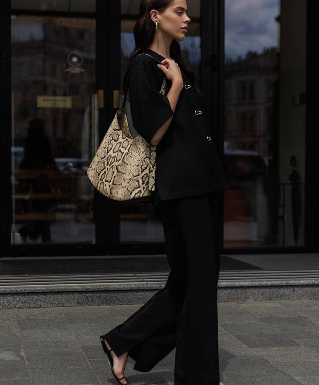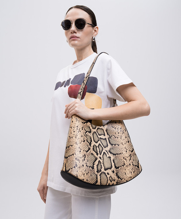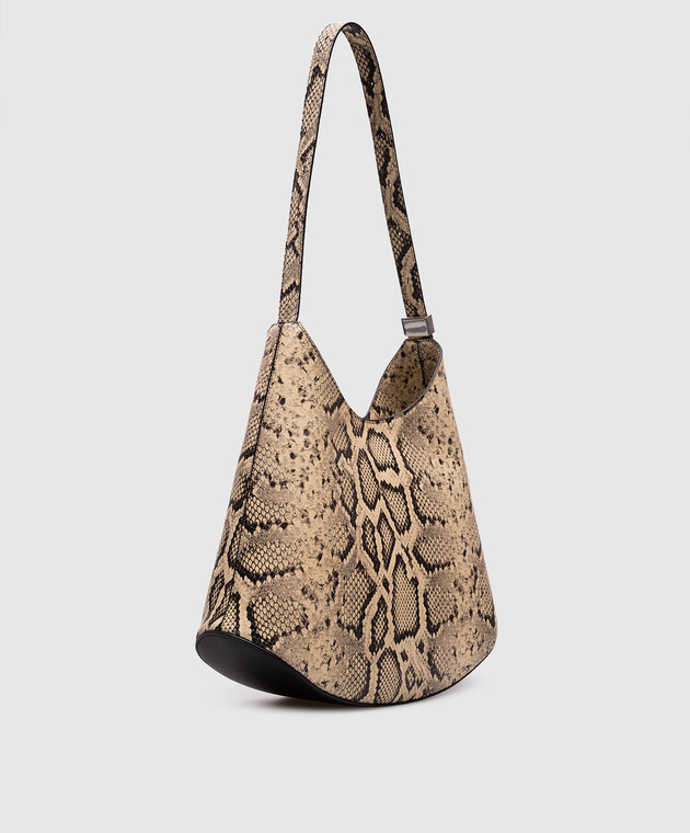 Бежева шкіряна сумка-хобо Eldorado з принтом рептилії