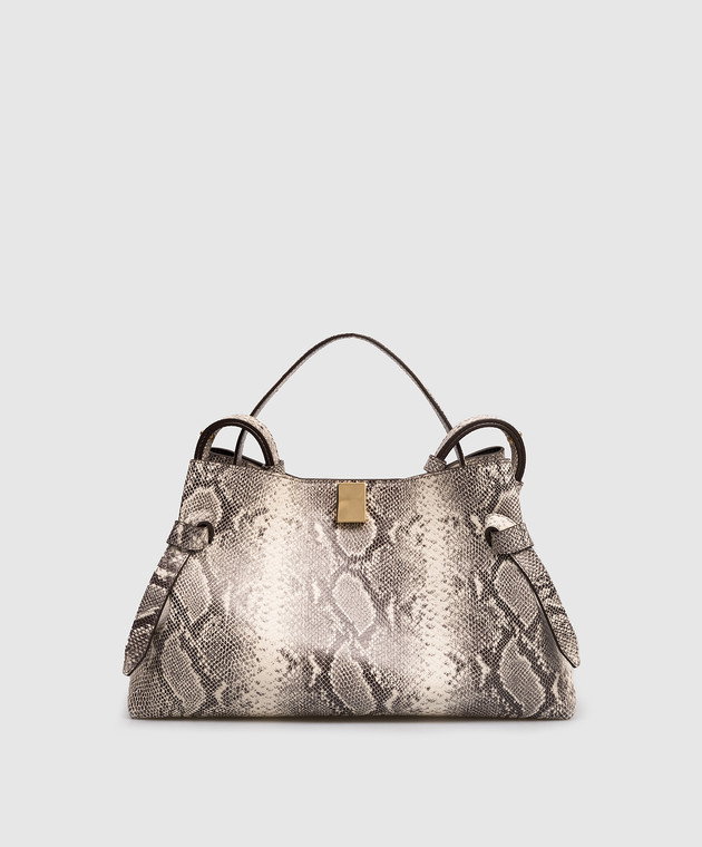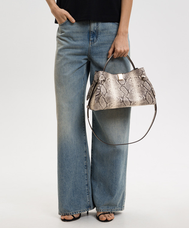 Бежева шкіряна сумка Gyoza з тисненням під шкіру рептилії