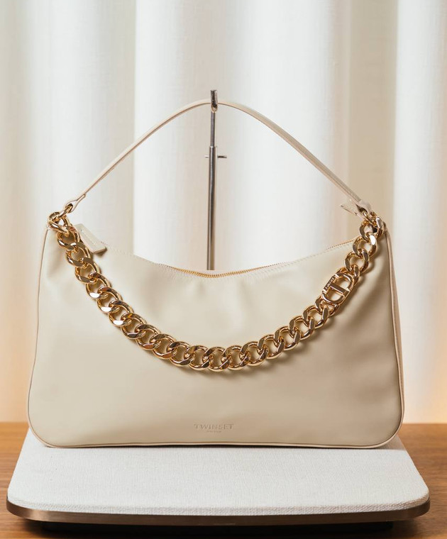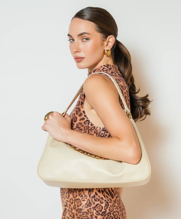 Бежева шкіряна сумка-хобо Liliane