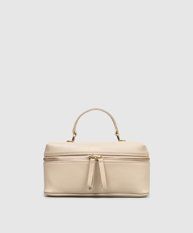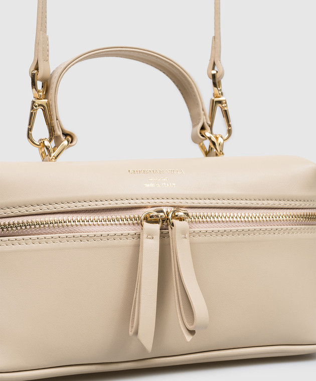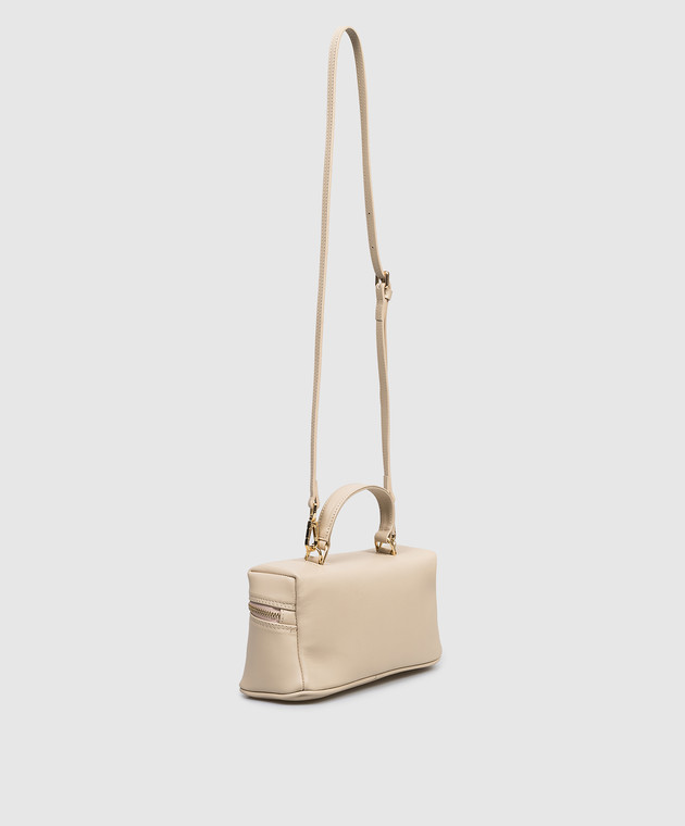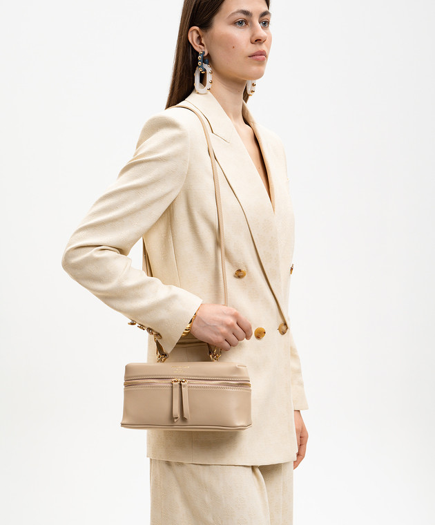 Бежева шкіряна сумка крос-боді з принтом логотипа