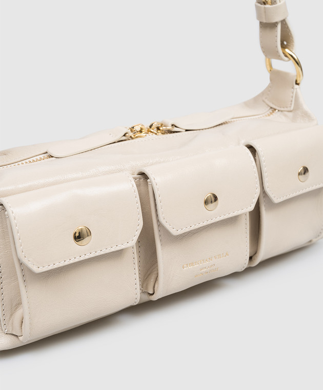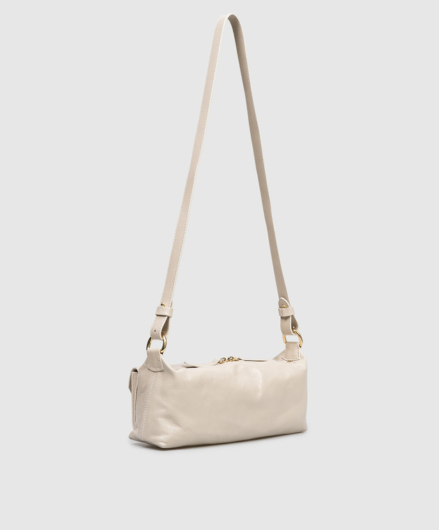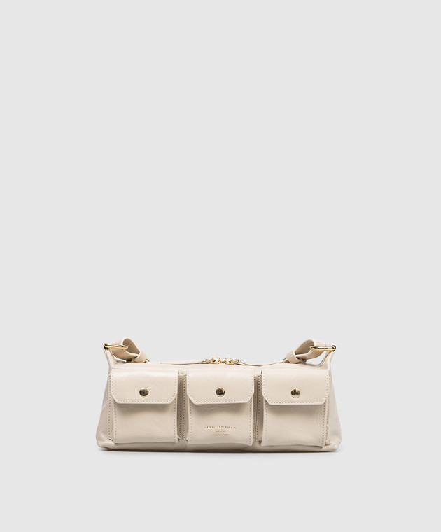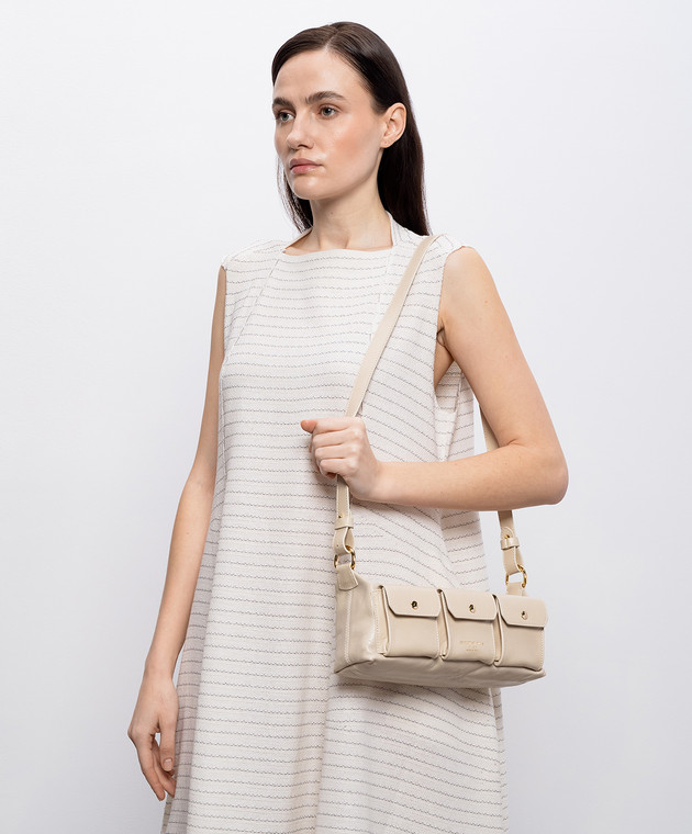 Бежева шкіряна сумка крос-боді з принтом логотипа