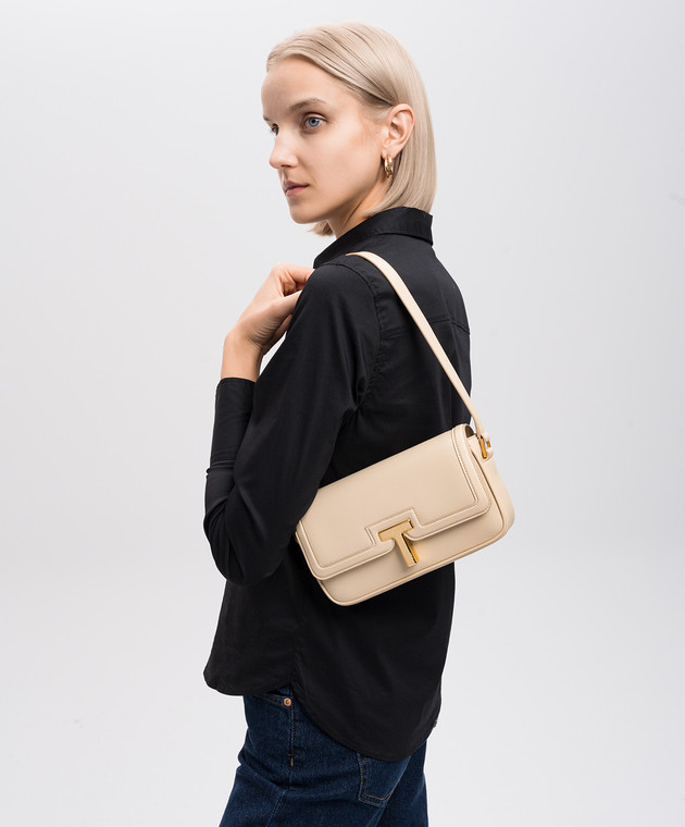 Бежева шкіряна сумка крос-боді WALLIS EAST WEST