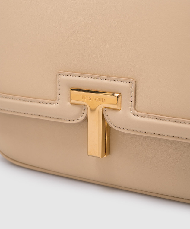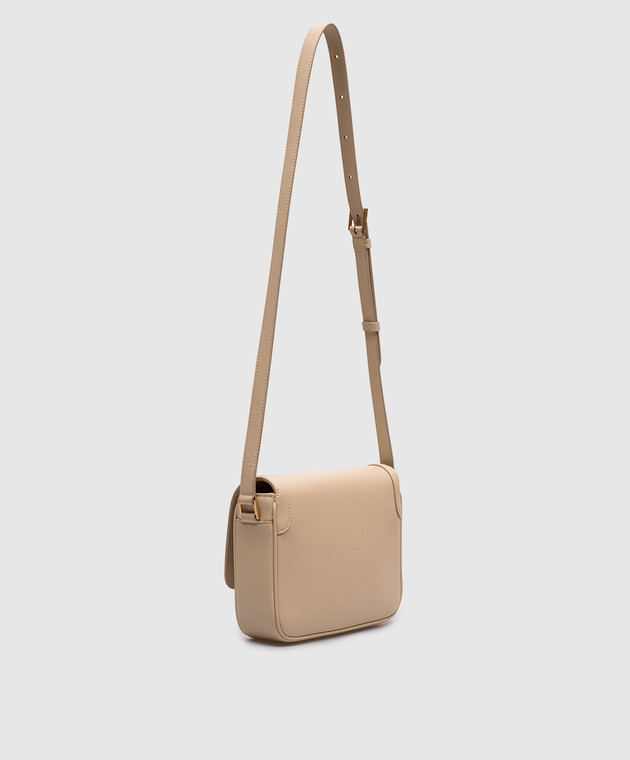 Бежева шкіряна сумка-месенджер WALLIS з монограмою логотипа