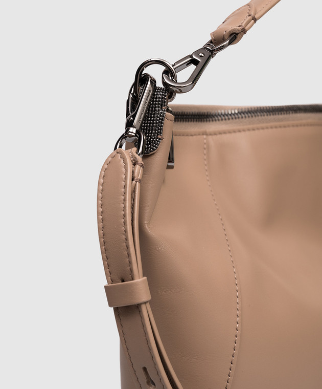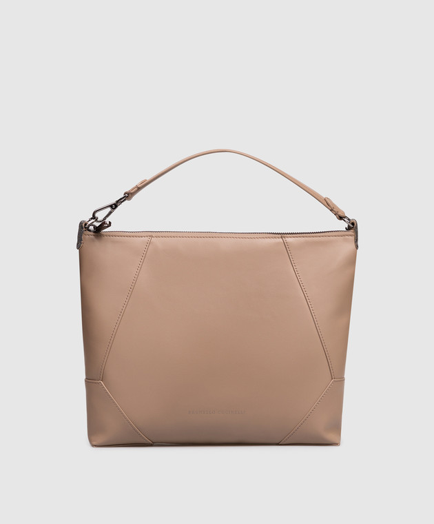 Бежева шкіряна сумка з логотипом