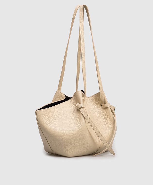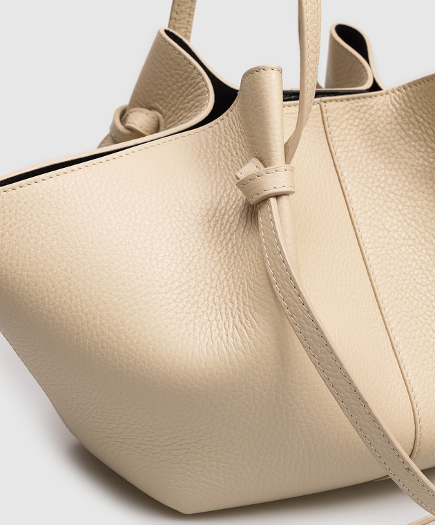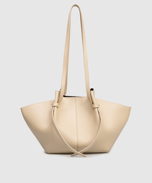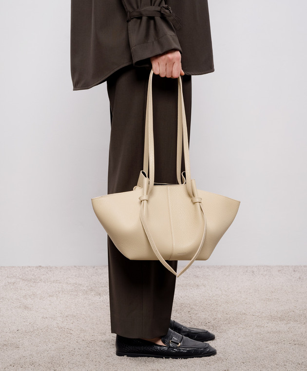 Бежева шкіряна сумка-тоут MOCHI з логотипом
