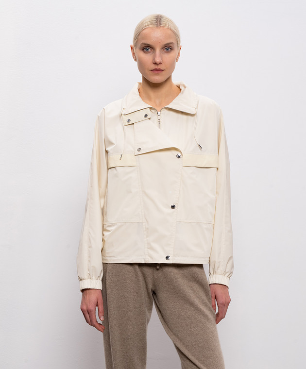 Бежева куртка зі шкіряними вставками
